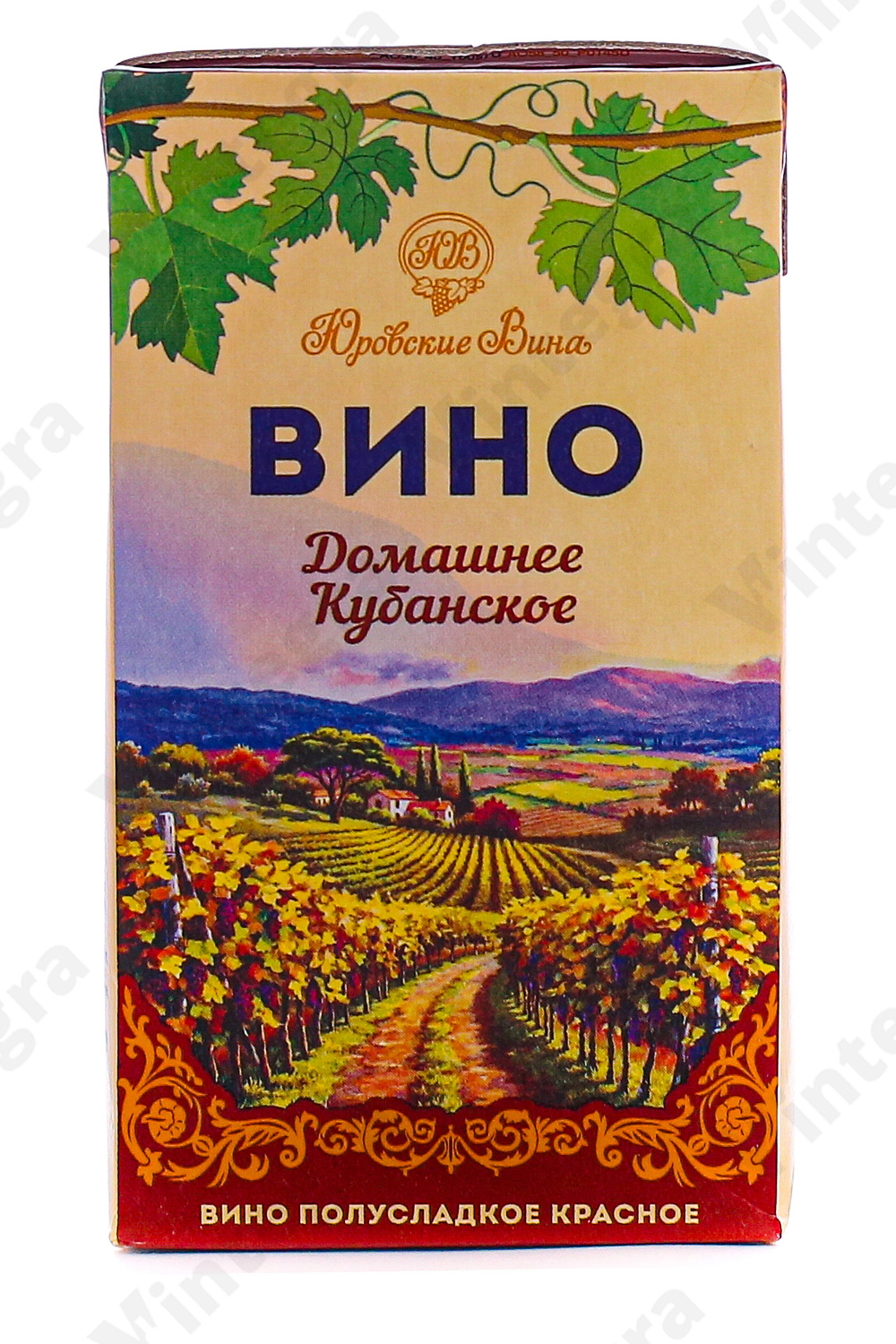 Красное вино Домашнее Кубанское, 2024, полусладкое, 1 л., 12%, Россия, Тетра Пак