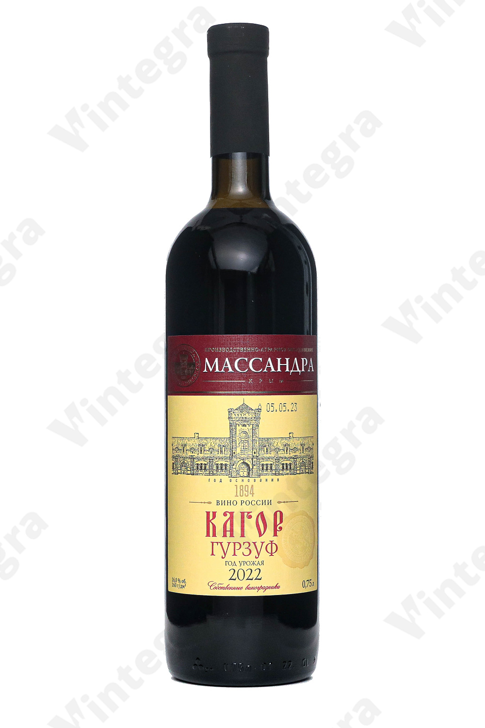 Кагор Массандра Кагор Гурзуф, 2022, десертное, 0.75 л., 16%, Россия