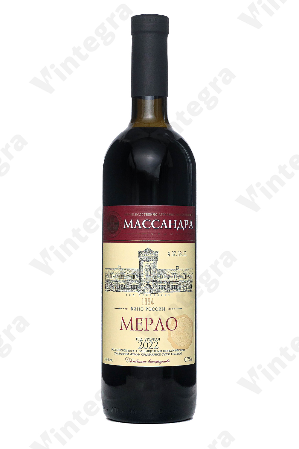 Красное вино Массандра Мерло, 2022, сухое, 0.75 л., 12%, Россия