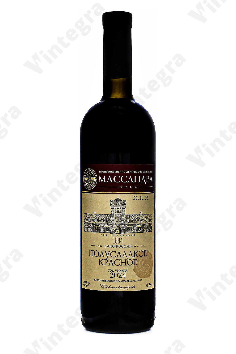 Красное вино Массандра Полусладкое Красное, 2024, полусладкое, 0.75 л., 12%, Россия