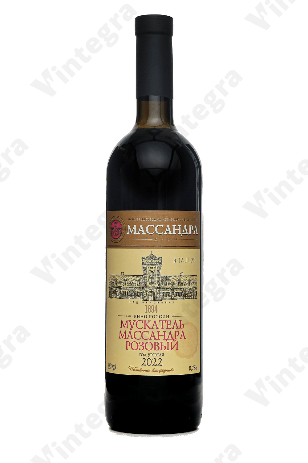 Ликёрное Мускатель Массандра, розовый, 2022, десертное, 0.75 л., 16%, Россия