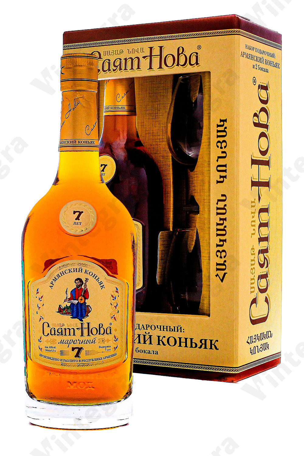Коньяк Саят Нова 7 лет, 0.5 л., 40%, Армения, подарочная упаковка с двумя бокалами