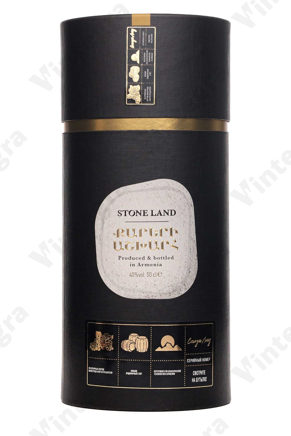 Коньяк Страна камней Камень #5. 5 лет, 0.5 л., 40%, Армения, подарочная упаковка