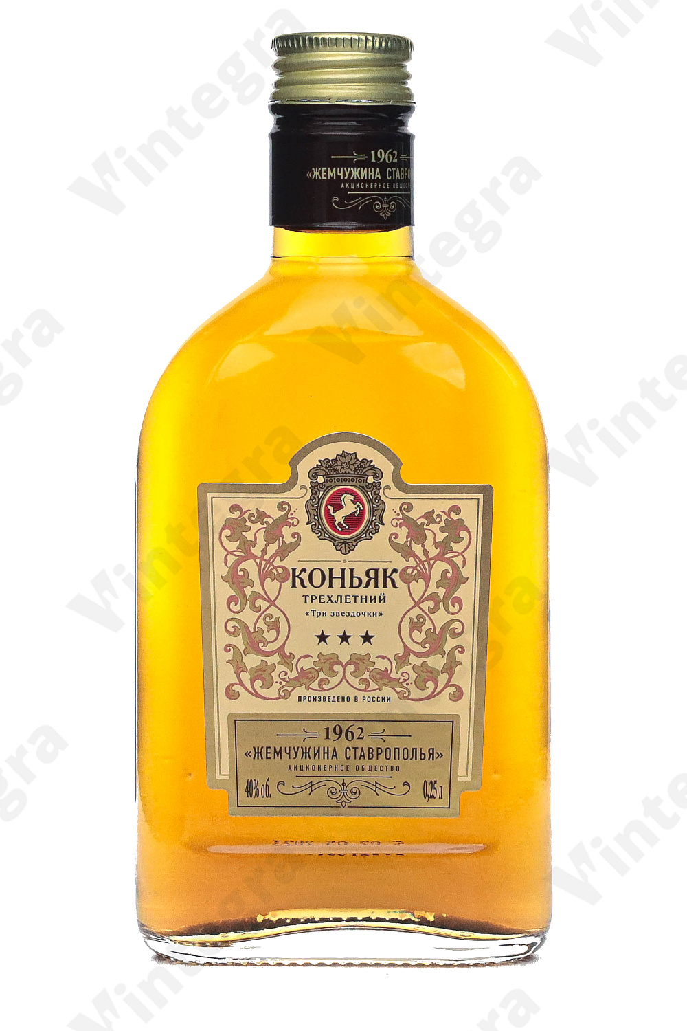 Коньяк Три звёздочки Жемчужина Ставрополья 1962 3 года, 0.25 л., 40%, Россия