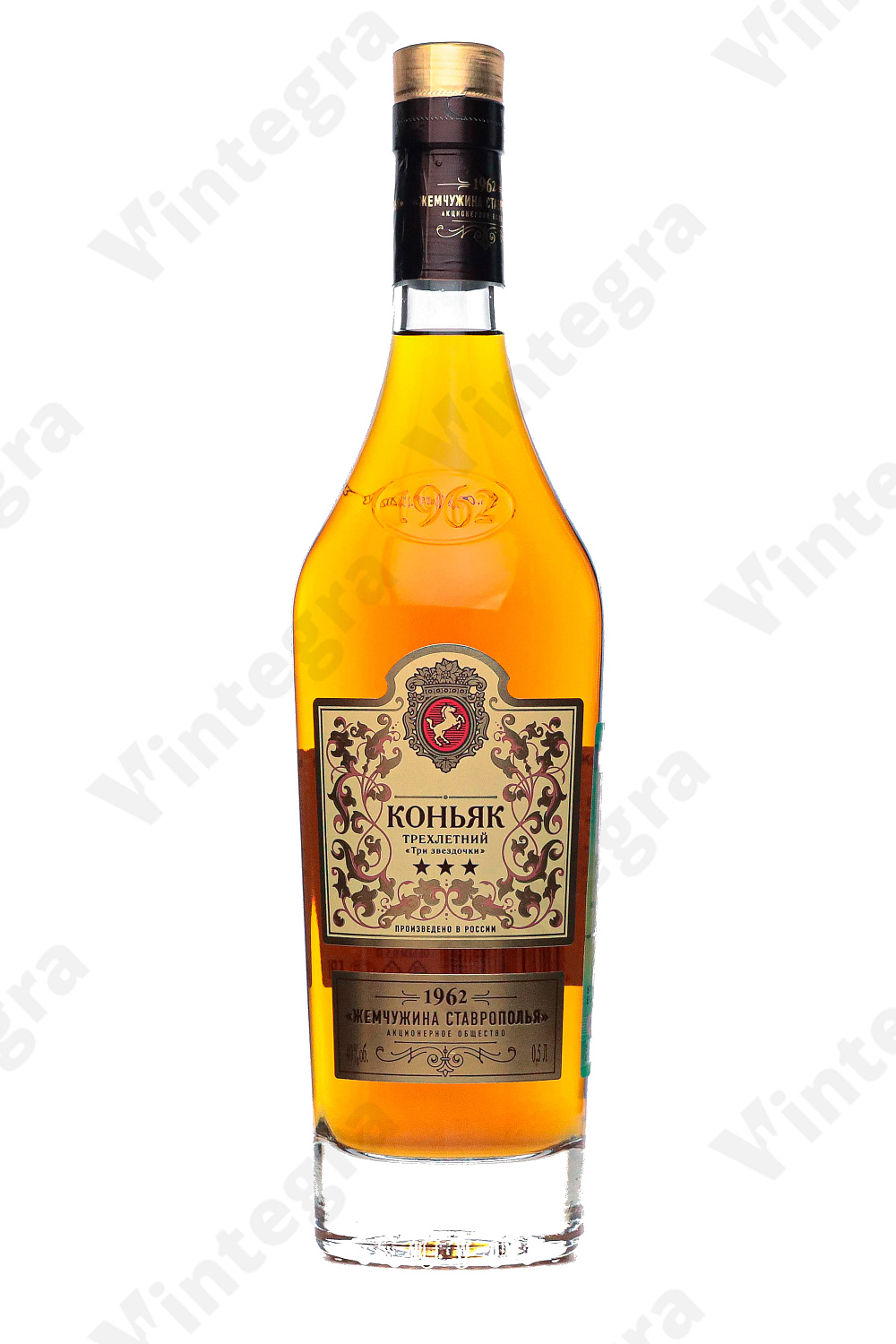 Коньяк Три звёздочки Жемчужина Ставрополья 1962 3 года, 0.5 л., 40%, Россия