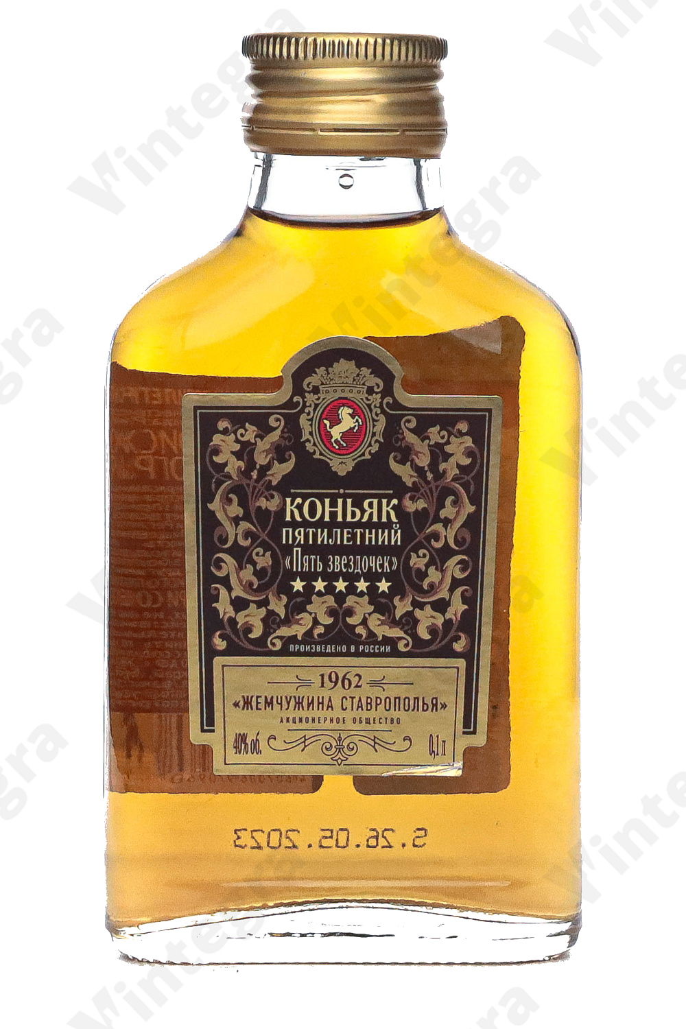 Коньяк Пять звездочек 1962 пятилетний Жемчужина Ставрополья, 0.1 л., 40%, Россия